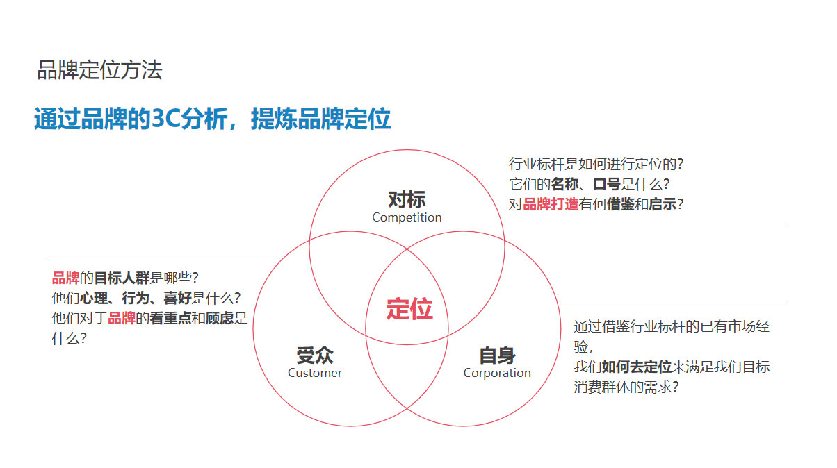 带着统一的背景认知,我们进入品牌定位 环节。本部分的重点是通过结构化工具让团队对品牌核心认知达成共识。